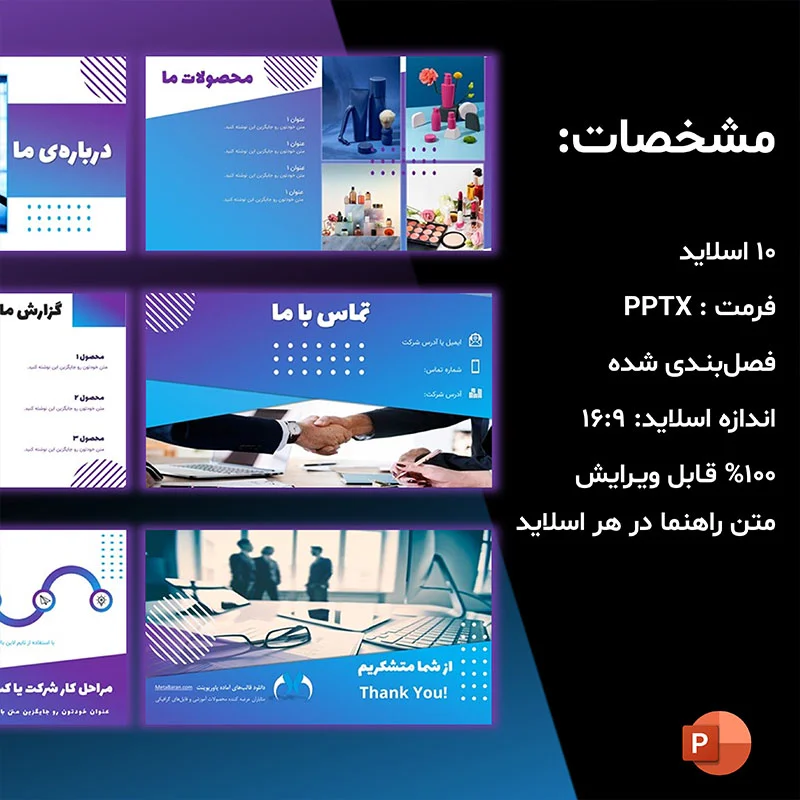 - پاورپوینت به شما کمک میکند تا نقاط قوت شرکت و محصولات خود را به بهترین شکل به نمایش بگذارید.