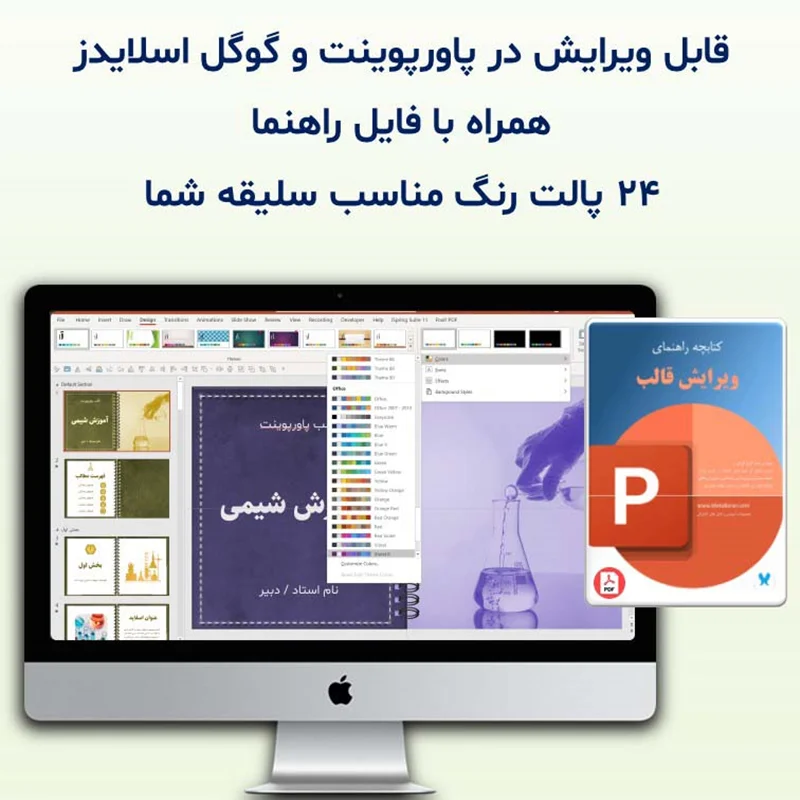 - امکان تغییر تم رنگی تنها با چند کلیک (24 پالت رنگی پیشفرض پاورپوینت)