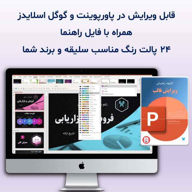 - تغییر سریع تم رنگی با ۲۴ پالت رنگی پیشفرض پاورپوینت