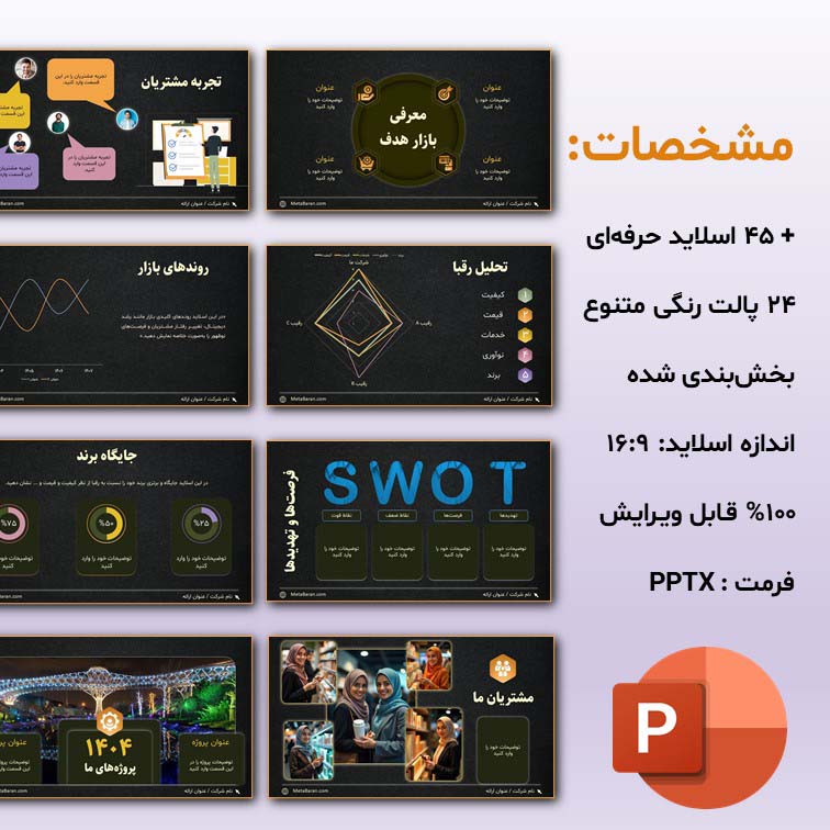 - شامل ۴۵ اسلاید حرفهای در ۵ بخش کاربردی