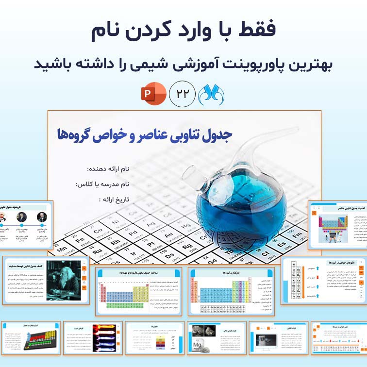 به دنبال یک پاورپوینت حرفهای و آماده برای تدریس یا تحقیق در شیمی هستید؟پاورپوینت جدول تناوبی عناصر و خواص گروهها با 22 اسلاید متحرک و طراحی جذاب، بهترین انتخاب برای شماست. این فایل تمامی مباحث مهم کتاب شیمی دهم و یازدهم را شامل میشود؛ از تاریخچه جدول تناوبی تا بررسی گروهها، دورهها و مثالهای کاربردی مانند فلزات قلیایی و هالوژنها.قابل ویرایش، همراه با رنگبندی قابل تغییر و جلوههای ویژه است. شما میتوانید تنها با وارد کردن نام خود، از آن برای ارائه در کلاس درس، جلسات آنلاین یا تهیه ویدیوهای آموزشی استفاده کنید.یک انتخاب هوشمندانه برای دانشآموزان، دبیران و پژوهشگران! برای دریافت، ابتدا در سایت متاباران ثبتنام کنید.روی دکمه «افزودن به سبد خرید» کلیک کنید و مراحل ثبت سفارش را کامل کنید.پس از ثبت سفارش، فایل محصول را از قسمت «دانلود فایلها» در پنل کاربری خود دریافت کنید. این فایل برای همیشه در پنل شما باقی میماند و در هر زمان قابل دانلود است.توضیحات بیشتر و ویدیوی این پاورپوینت آماده را در پایین صفحه مشاهده کنید.