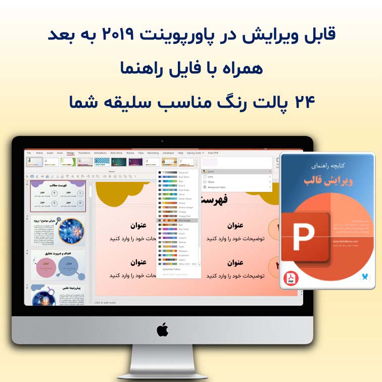 - تغییر رنگها تنها با چند کلیک (۲۴ پالت رنگی پیشفرض پاورپوینت)