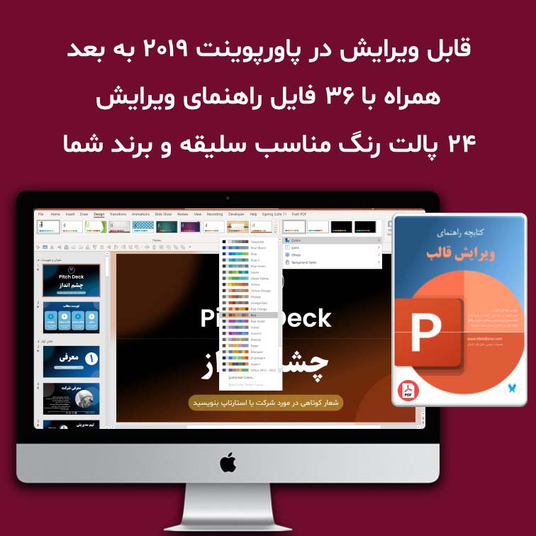 - قابلیت تغییر رنگها تنها با چند کلیک (۲۴ پالت رنگی پیشفرض پاورپوینت)