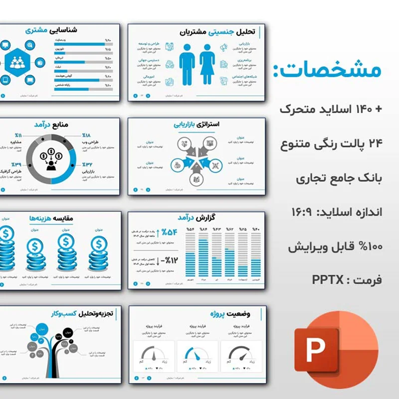 با خرید این قالب، شما فقط 140 اسلاید دریافت نمیکنید، بلکه یک پکیج کامل برای ارائههای حرفهای در اختیار خواهید داشت: