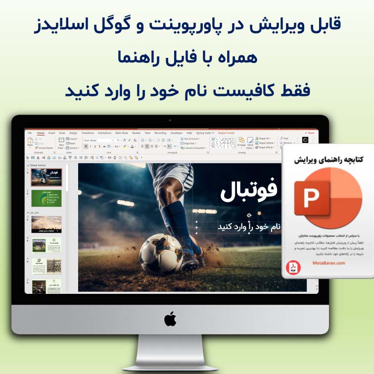 اگر میخواهید در کلاس یا جمع دوستان با یک ارائه جذاب و ماندگار بدرخشید.این پاورپوینت آماده فوتبال از سایت متاباران انتخاب هوشمندانه شماست.✨ تنها کافیست فایل را دانلود کنید، نام خود را وارد نمایید و ارائهتان را آغاز کنید!