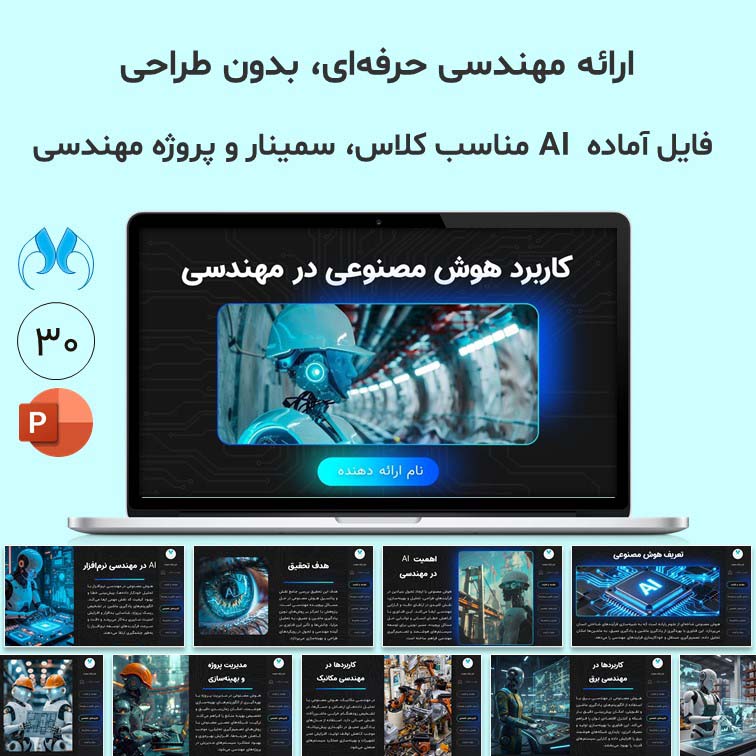 این پاورپوینت آماده «کاربرد هوش مصنوعی در مهندسی» یک فایل حرفهای، منودار و کاملاً قابلویرایش است که به شما امکان میدهد بدون صرف زمان برای طراحی، یک ارائه استاندارد و جذاب داشته باشید. تمام ۳۰ اسلاید این فایل دارای انیمیشن و جلوههای ویژه هستند و میتوانید تنها با وارد کردن نام خود، آن را برای ارائههای دانشگاهی، سمینار، تحقیق یا آموزش آنلاین استفاده کنید. این محصول مناسب دانشجویان، معلمان و مهندسانی است که به دنبال یک ارائه آماده، علمی و چشمنواز هستند. همچنین میتوانید از پاورپوینت خروجی ویدئو تهیه کرده و برای تولید محتوا در شبکههای اجتماعی استفاده کنید. این فایل راهکاری سریع، اقتصادی و حرفهای برای یک ارائه تأثیرگذار است.برای دریافت، ابتدا در سایت متاباران ثبتنام کنید.روی دکمه «افزودن به سبد خرید» کلیک کنید و مراحل ثبت سفارش را کامل کنید.پس از ثبت سفارش، فایل محصول را از قسمت «دانلود فایلها» در پنل کاربری خود دریافت کنید. این فایل برای همیشه در پنل شما باقی میماند و در هر زمان قابل دانلود است.توضیحات بیشتر و ویدیوی این پاورپوینت آماده را در پایین صفحه مشاهده کنید.