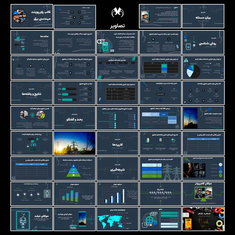 - کاربرد چندمنظوره: از این قالب میتوانید برای ارائه پایاننامه کارشناسی ارشد و دکتری، دروس دانشگاهی و ارائههای تخصصی در حوزه مهندسی برق استفاده کنید.