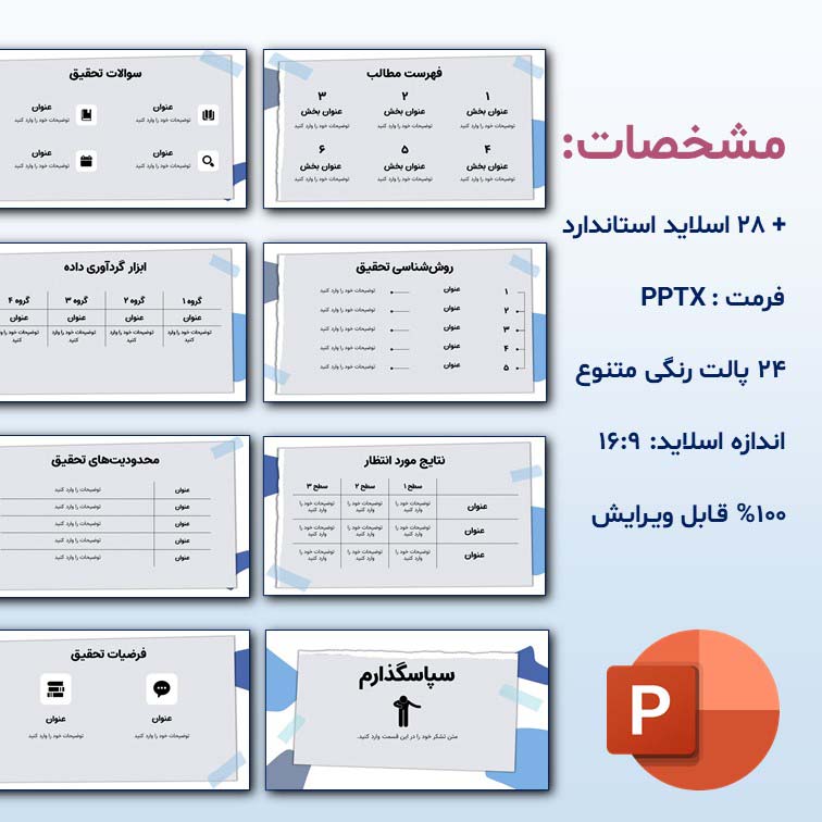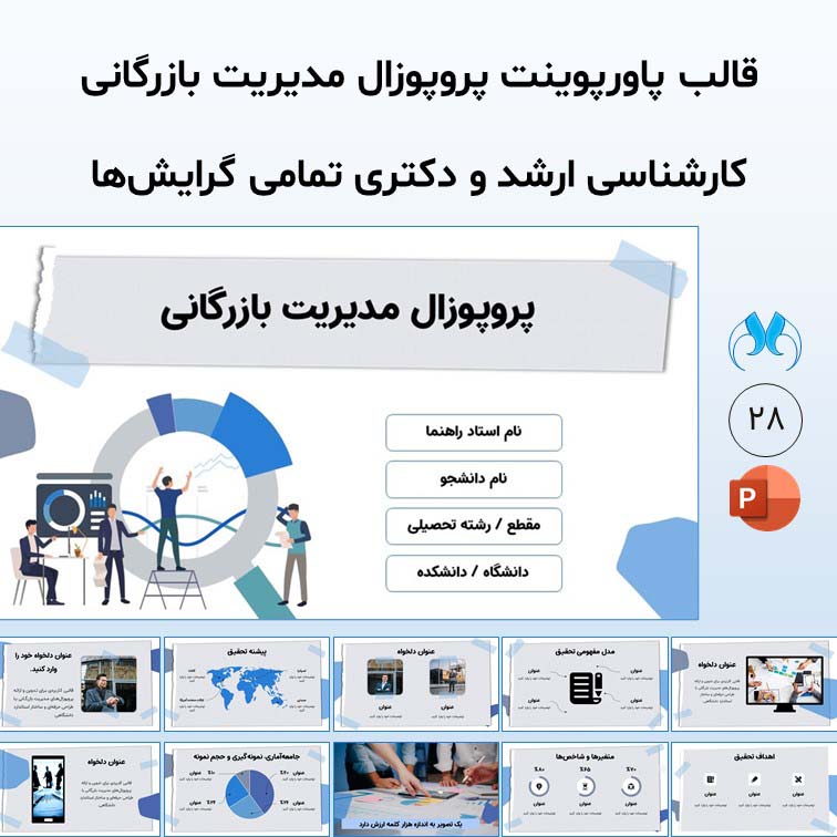 - ۲۸ اسلاید کاملاً استاندارد دانشگاهی مطابق ساختار رایج پروپوزال