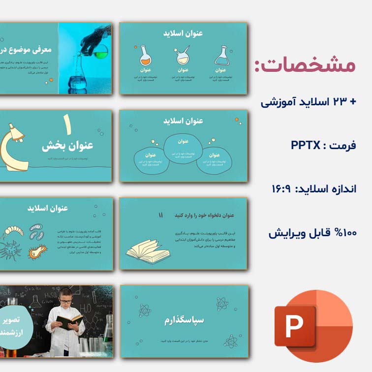 برای آشنایی کامل با این قالب آماده پاورپوینت علوم، ویدیوی معرفی محصول را مشاهده کنید.