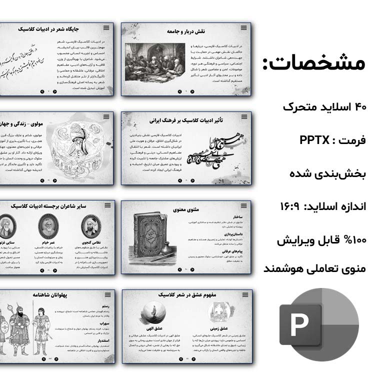 - پاورپوینت آماده ادبیات کلاسیک فارسی در ۴۰ اسلاید حرفهای