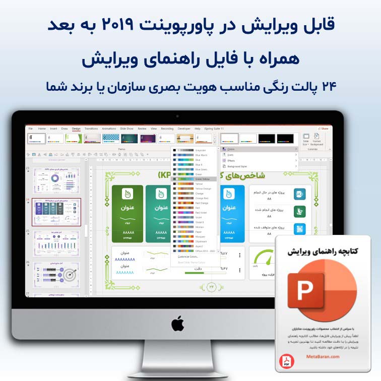 - امکان تغییر سریع تم رنگی با ۲۴ پالت رنگی پیشفرض پاورپوینت