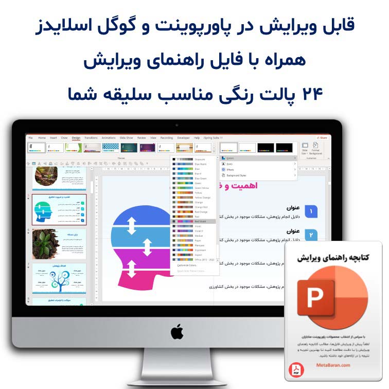 - امکان تغییر سریع تم رنگی با استفاده از 24 پالت رنگی پیشفرض پاورپوینت