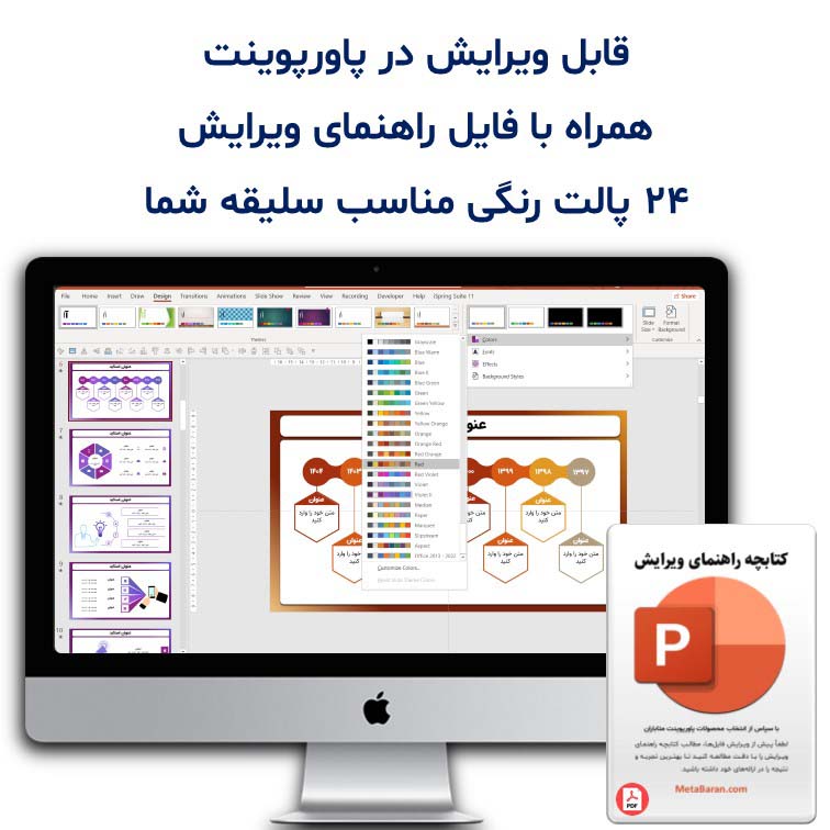 - قابلیت تغییر تم رنگی با 24 پالت رنگی پیشفرض پاورپوینت