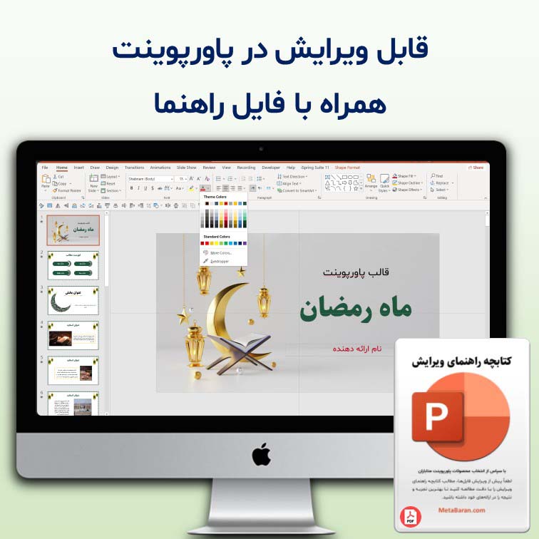 برای آشنایی کامل با جزئیات طراحی اسلایدها و مشاهده نمای کلی قالب، پیشنهاد میکنیم حتماً ویدیوی معرفی قالب پاورپوینت ماه رمضان را تماشا کنید.