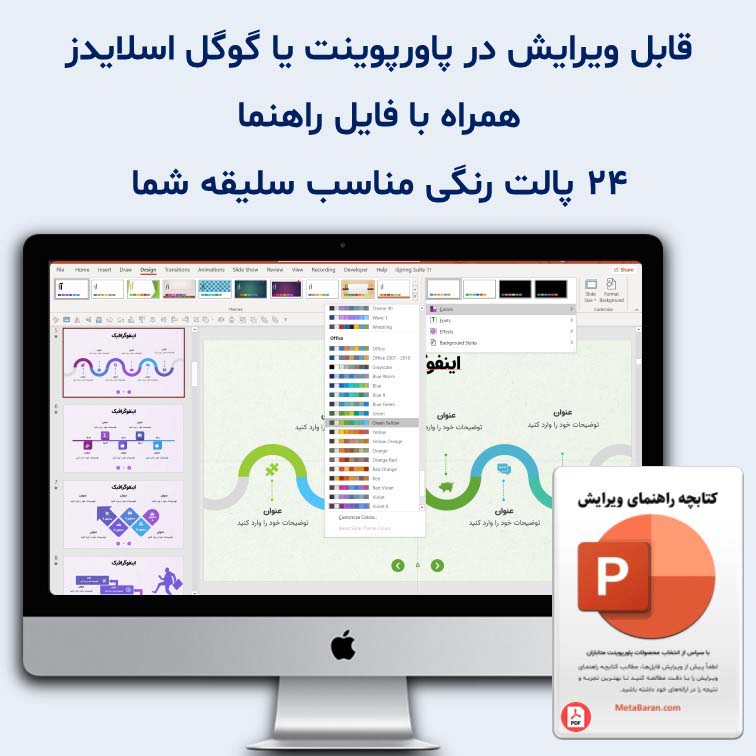 ✔ قابلیت تغییر رنگ با ۲۴ پالت رنگی پیشفرض پاورپوینت