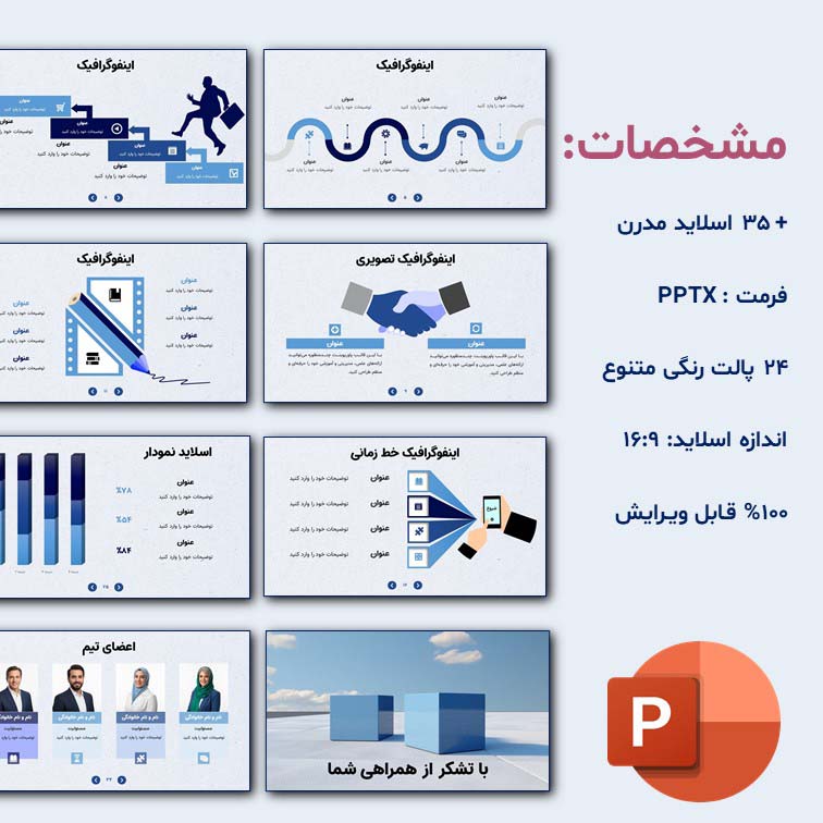 قالب پاورپوینت چندمنظوره «مکعب» | تم حرفهای ۳۵ اسلایدی آماده
