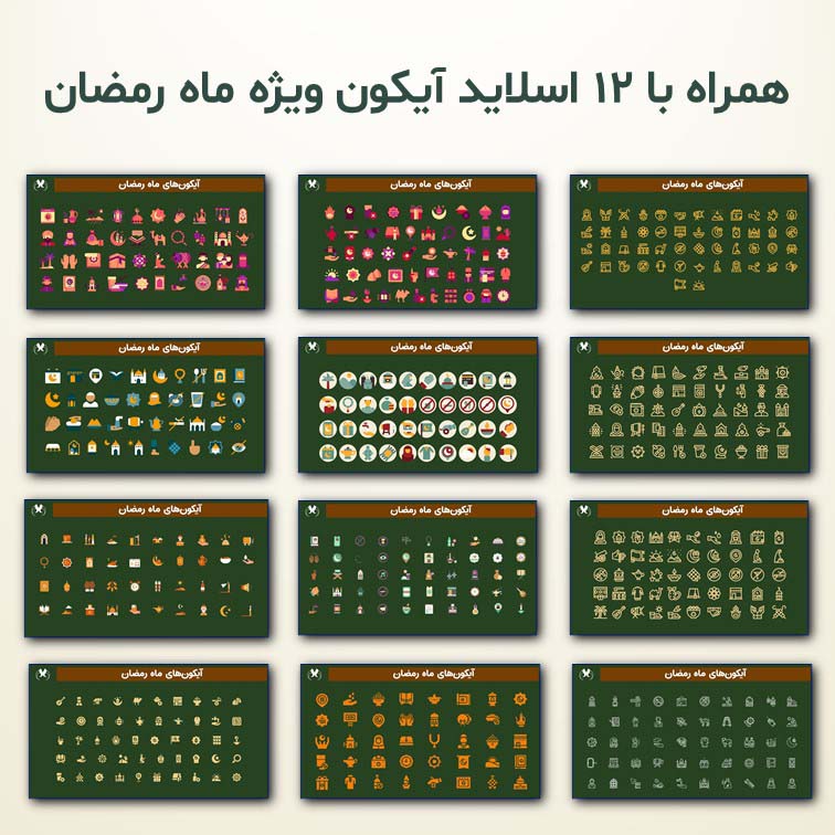 - طراحی اصیل: در تمامی اسلایدها از نقوش اسلیمی، تذهیب و کادرهای سنتی استفاده شده که هماهنگی کاملی با فضای معنوی رمضان دارد.