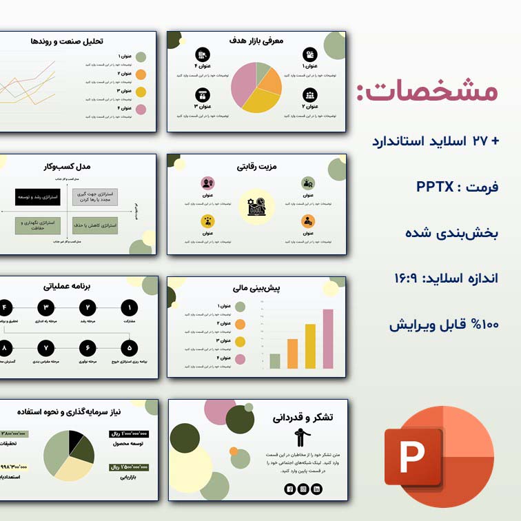 اگر قصد دارید یک Business Plan حرفهای و استاندارد ارائه دهید، این قالب برای شما طراحی شده است.