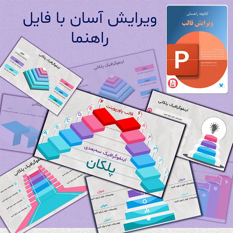 آیا به دنبال یک قالب پاورپوینت جذاب و حرفهای برای ارائه ایدههایتان هستید؟ قالب اینفوگرافیک سه بعدی پلکان، با طراحی منحصر به فرد و 30 اسلاید متنوع، به شما کمک میکند تا هر نوع داده یا فرآیندی را به صورت بصری و جذاب ارائه کنید. این قالب با طرح های متنوع و سه بعدی، برای نمایش مراحل و فرآیندها بسیار مناسب است. این قالب رایگان و کاملاً قابل ویرایش است و برای افرادی که به دنبال ارائههای حرفهای هستند، بسیار مناسب است.برای دانلود رایگان این قالب، کافیست بر روی دکمه "افزودن به سبد خرید" کلیک کنید و مراحل ثبت سفارش را دنبال کنید. توضیحات بیشتر و ویدیوی این قالب را در پایین صفحه مشاهده کنید.