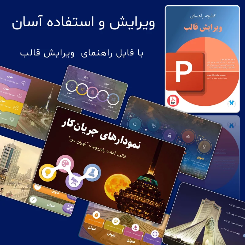 قالب پاورپوینت تهران من، با طراحی زیبا و انیمیشنهای جذاب، راهکاری ایدهآل برای ارائههای حرفهای شماست. این قالب شامل 12 اسلاید با نمودارهای جریان کار(Process Diagrams) متنوع است که با استفاده از تصاویر زیبای شهر تهران، زیبایی بصری ارائه شما را دوچندان میکند. نسخه دموی رایگان PDF را دانلود کنید و با این قالب خلاقانه آشنا شوید. این قالب به همراه کتابچه راهنمای ویرایش، بانک آیکون، فونتهای پرکاربرد فارسی در اختیار شما قرار میگیرد.برای خرید، کافیست بر روی دکمه "افزودن به سبد خرید" کلیک کنید. توضیحات بیشتر و ویدیوی این قالب را در پایین صفحه مشاهده کنید.