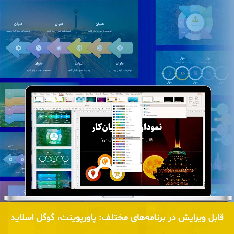 - قابل ویرایش و شخصیسازی: به راحتی میتوانید متنها، رنگها و تصاویر را تغییر دهید.