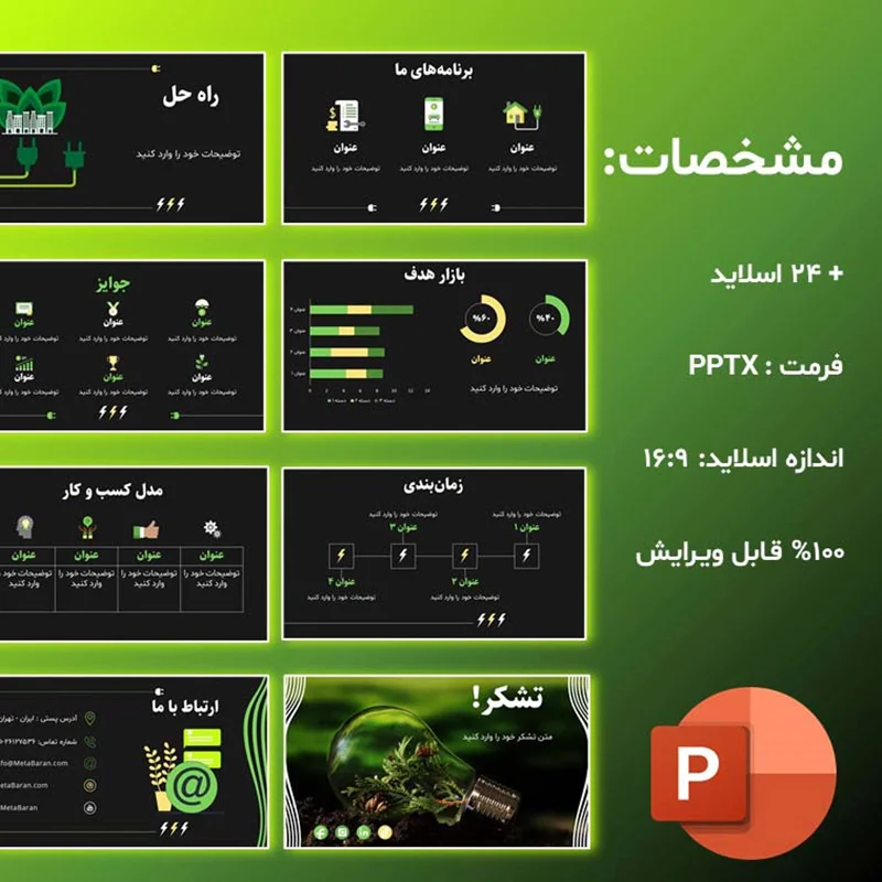کاربردهای قالب آماده پاورپوینت پیچ دک انرژی پاک