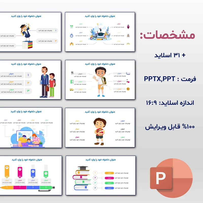 - 31 اسلاید آماده: صرفهجویی در زمان و هزینه طراحی