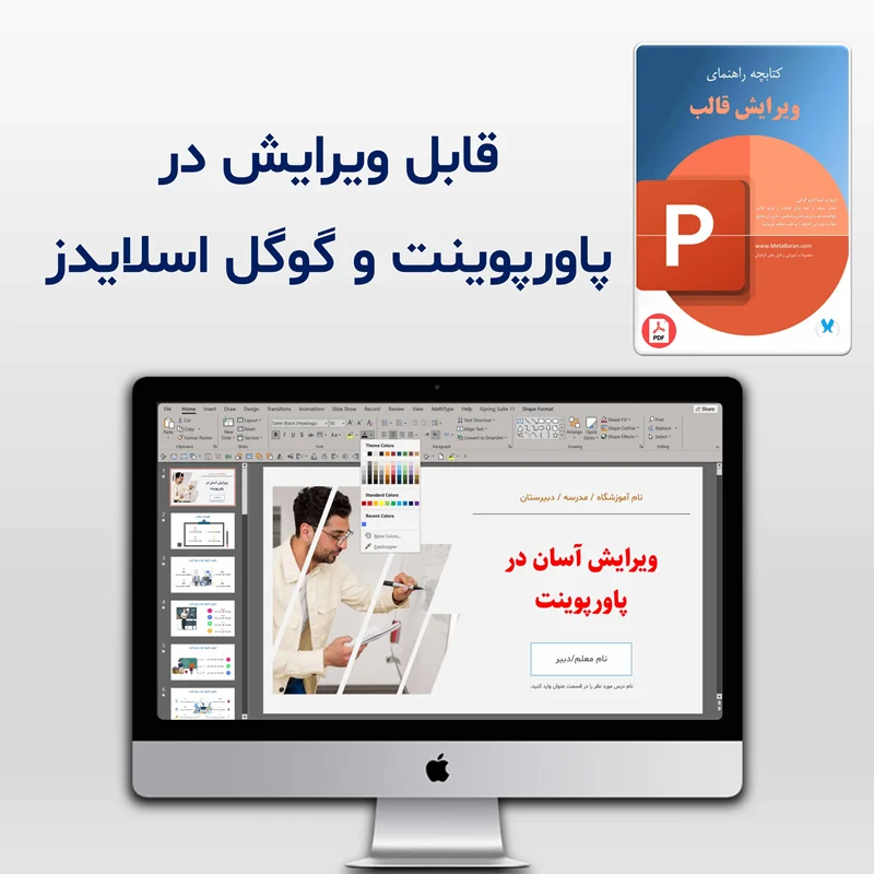 - قابلیت ویرایش و سفارشیسازی: تغییر رنگ، فونت و محتوای اسلایدها به دلخواه